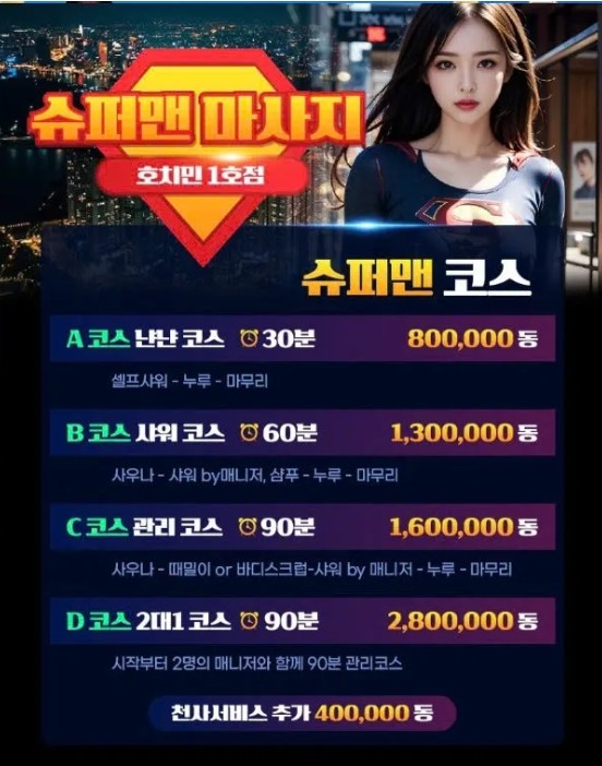 호치민 불건마 슈퍼맨 마사지는 베트남 호치민 7군 푸미흥
