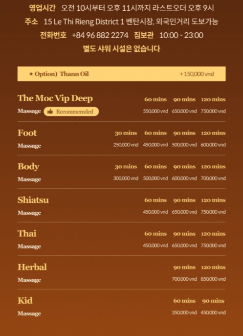 호치민 1군 마사지 더목 스파는 화려한 부가 서비스보다는