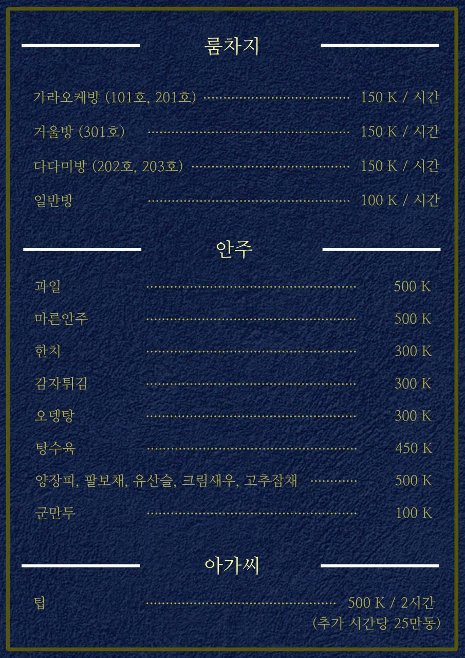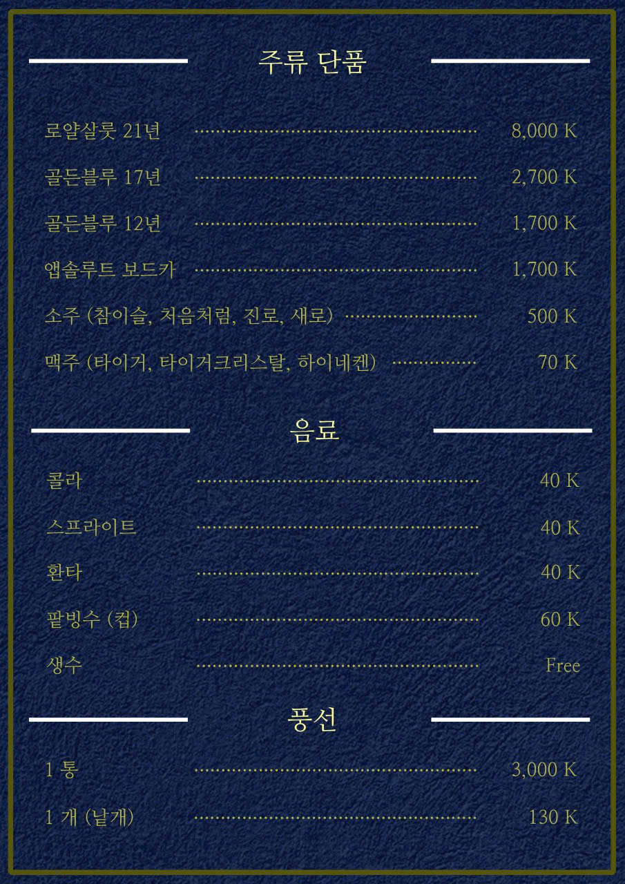 2군 / 착석바 / 한국인 운영 / 가격 정찰제